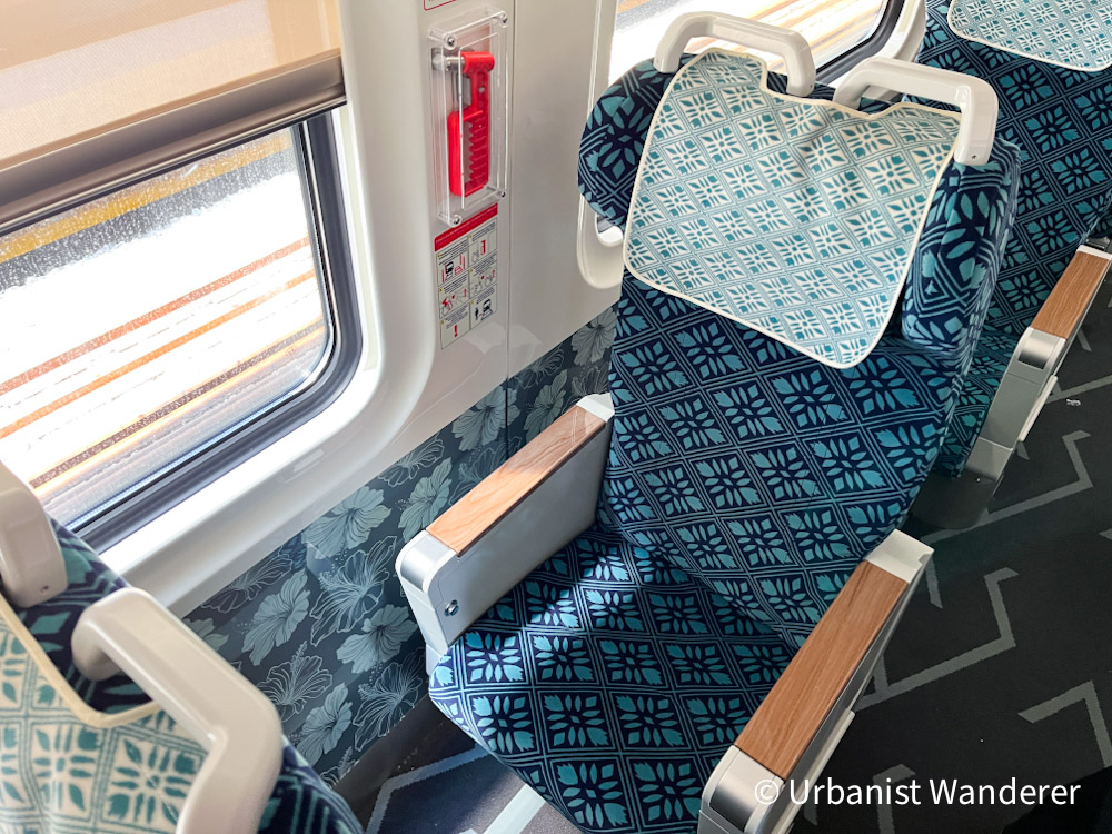 I have nice things to say about the onboard interiors. The early ETS interiors are best described as functional, as the priority was on running a reliable service at what was a particularly difficult time for KTMB. It appears KTMB has since realised the value of a good interior, plus they really, really want you to take the train. The Class 94 sets show that KTMB has paid more attention to interior styling. Newly designed floral themed upholstery and wallpaper give the cabin more character, while darker colour tones on the upholstery and carpets up the “premium” feel, not to mention the lightly coloured faux wood panelling on the armrests.